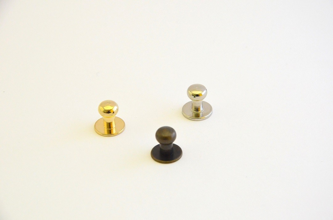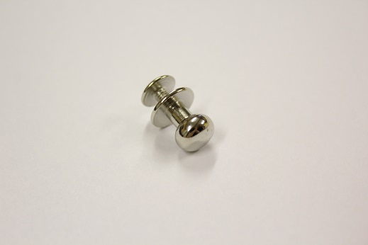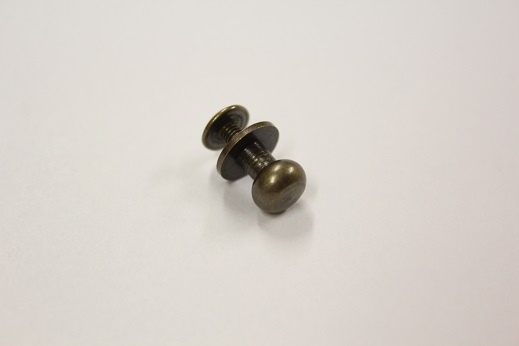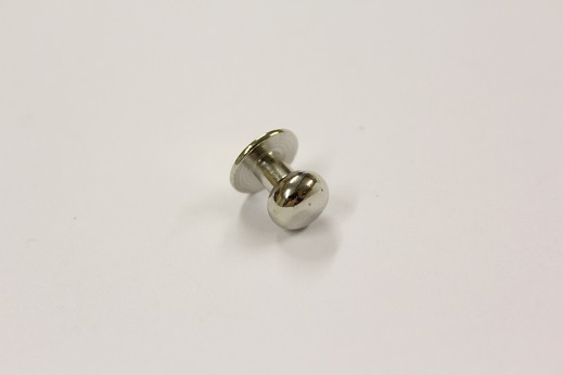 Almindelig geværknap med lille hoved. 3 mm gevind. Findes i farverne gl. messing og sølv. Længden af hele geværknappen er 12 mm. Hovedet er 8 mm i diameter. Halsen er 4 mm i diameter. Bruges som lukkeanordning til bl.a. læderremme og tasker. Der medfølger skrue til fastgørelse. Geværknappen bruges tit på skulderremme til jagtvåben - deraf navnet.